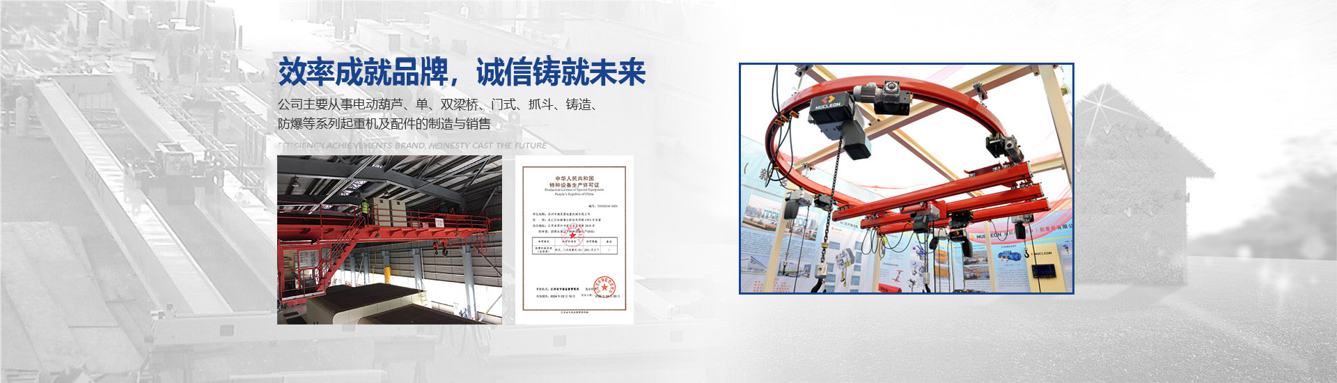 蘇州市德昊源起重機械有限公司主要從事電動葫蘆、單、雙梁橋、門式、抓斗、鑄造、防爆等系列起重機及配件的制造與銷售。擁有江蘇省市場監督管理局頒發的中華人民共和國特種設備生產許可證。